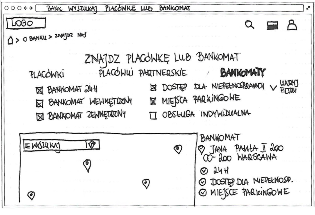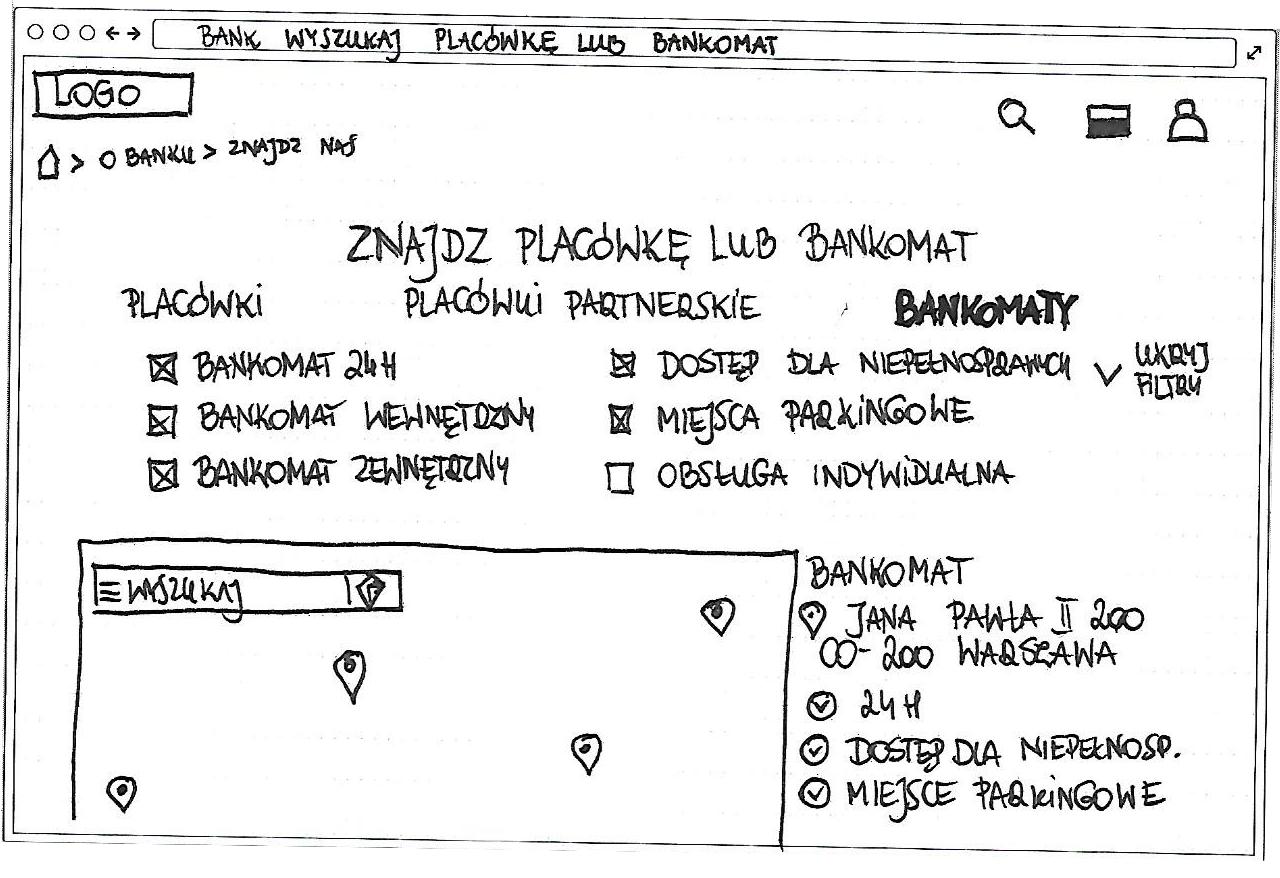 During the UX research, several key issues were identified as important to the study participants. Respondents expressed the need for quick and intuitive access to information about ATMs and bank branches. They often pointed out the lack of clarity in the interface and the absence of filtering options, which made it difficult for them to use the application effectively. Additionally, some participants highlighted the need for more detailed information on the availability of services for people with disabilities and the lack of personalization in terms of search preferences.